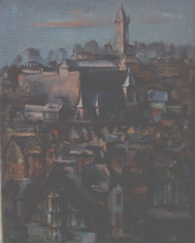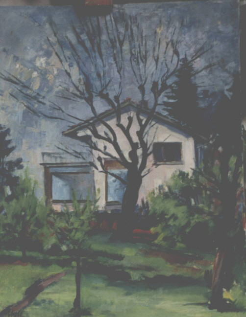Blick nach Westen aus dem Atelierfenster in Nachbarsgarten von Dr.Thoms & Haus von Dr.Brandt